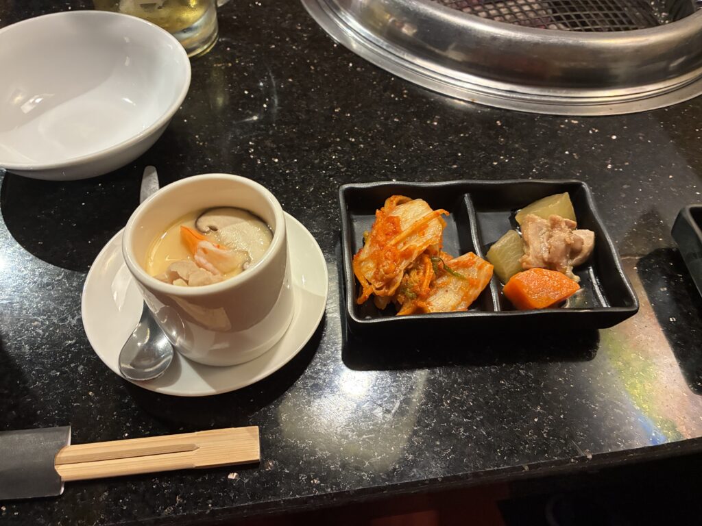 茶碗蒸しと、副菜のキムチと煮物も美味しかったです。